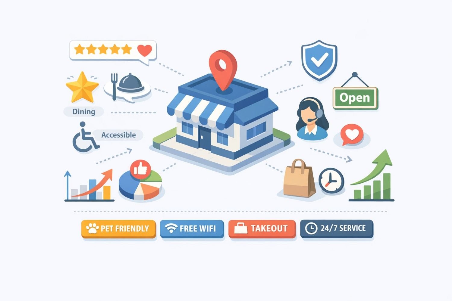 Accurate attributes build trust with potential customers. When someone visits your business expecting wheelchair accessibility based on your profile and finds it accurate, that positive experience reinforces trust in your entire listing.