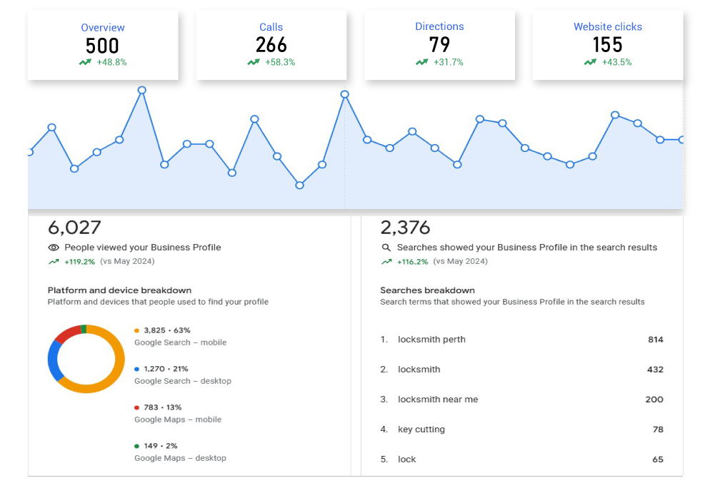 Pro Tip: Use Google Analytics, Google Search Console, and those handy GBP Insights. Bonus points for custom dashboards in Looker Studio.
